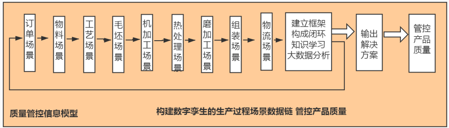 比如機(jī)加工信息模型,FB-CL測(cè)試床在產(chǎn)品的生產(chǎn)過程中,將這種虛實(shí)對(duì)應(yīng)的數(shù)字孿生結(jié)構(gòu)連接起來,就構(gòu)成產(chǎn)品生產(chǎn)過程數(shù)字孿生的場(chǎng)景數(shù)據(jù)鏈,我們把這個(gè)數(shù)據(jù)鏈建立反饋,構(gòu)成閉環(huán),就可以對(duì)產(chǎn)品的生產(chǎn)過程的技術(shù)工藝知識(shí)進(jìn)行自動(dòng)學(xué)習(xí)、認(rèn)知分析、預(yù)測(cè)調(diào)整,從而管控產(chǎn)品的生產(chǎn)質(zhì)量。
