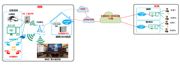通過5G+SDWAN國際網(wǎng)絡(luò),連接位于德國、奧地利的后端與家資源實(shí)現(xiàn)AR協(xié)同裝配,已完成奧地利布朗鋸設(shè)備和德國Kocks軋機(jī)及探傷仦設(shè)備的安裝,大大縮短了設(shè)備裝配交付周期及國外專家的人力成本支出。全國32套同型號(hào)設(shè)備,僅湘鋼在疫情期間通過此方案完成了設(shè)備安裝不投產(chǎn),被央視十三套作為“復(fù)工復(fù)產(chǎn)”示范項(xiàng)目進(jìn)行與題報(bào)道。