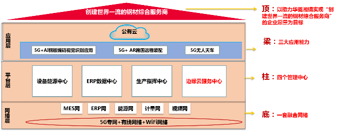 在打造湘鋼5G智慧工廠的過程中,創(chuàng)新性構(gòu)建了“1+1+N”模式的5G+智慧鋼鐵垂直行業(yè)解決方案,助力智能化、數(shù)字化的中國鋼鐵企業(yè)轉(zhuǎn)型,實(shí)現(xiàn)鋼鐵企業(yè)“讓設(shè)備開口說話、讓機(jī)器自主運(yùn)行、讓員工尊嚴(yán)工作、讓企業(yè)高效發(fā)展”的目標(biāo)。