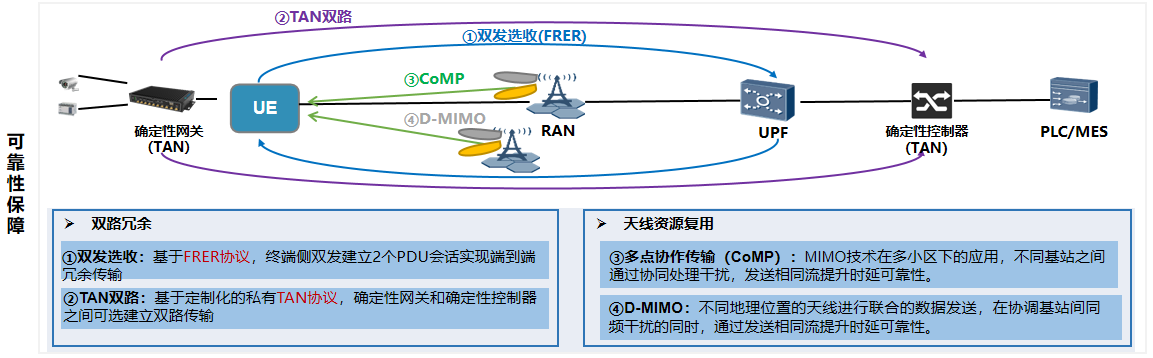 5G網(wǎng)絡(luò)的可靠性保障,主要通過冗余傳輸來實現(xiàn),包括無線空口的冗余傳輸、5G內(nèi)部的冗余傳輸(TSN 802.1CB)、業(yè)務(wù)級的冗余傳輸(比如基于TAN協(xié)議)等。