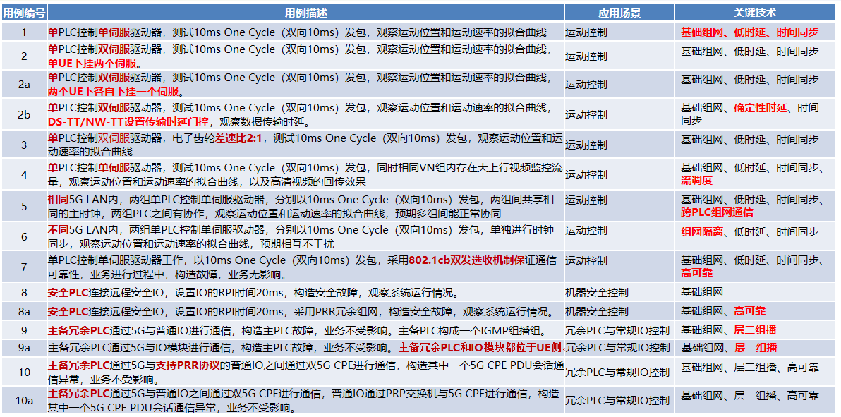 驗證5G確定性技術(shù)的能力,驗證產(chǎn)業(yè)的支持度,驗證5G與工業(yè)協(xié)議的融合度,驗證5G通信能力對工業(yè)自動化應(yīng)用場景(數(shù)據(jù)采集、普通IO、機器安全控制、運動控制)的覆蓋能力,發(fā)現(xiàn)并解決存在的問題。
